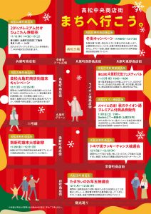 中央商店街エリアで開催される秋から冬にかけての催しが一目で分かる内容となっており、商店街めぐりがさらに楽しくなる一枚です。